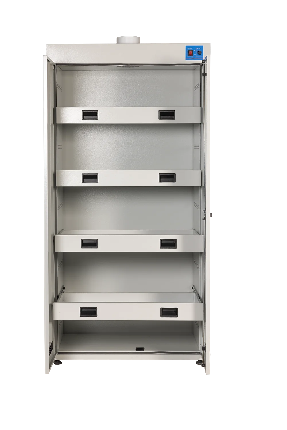 - Kabinin üst kısmındaki çift cidarlı yapı sayesinde dışarı atılan hava ile kabin içerisinde oluşabilecek asit, baz, solvent, buhar ve kokuları tahliye edilmektedir,